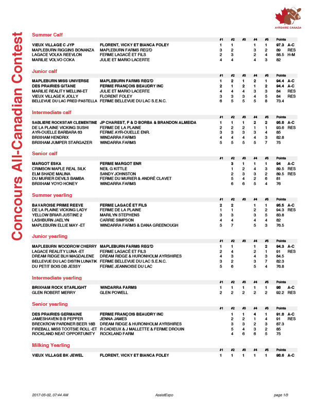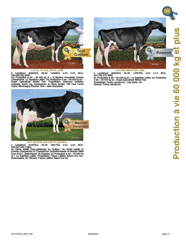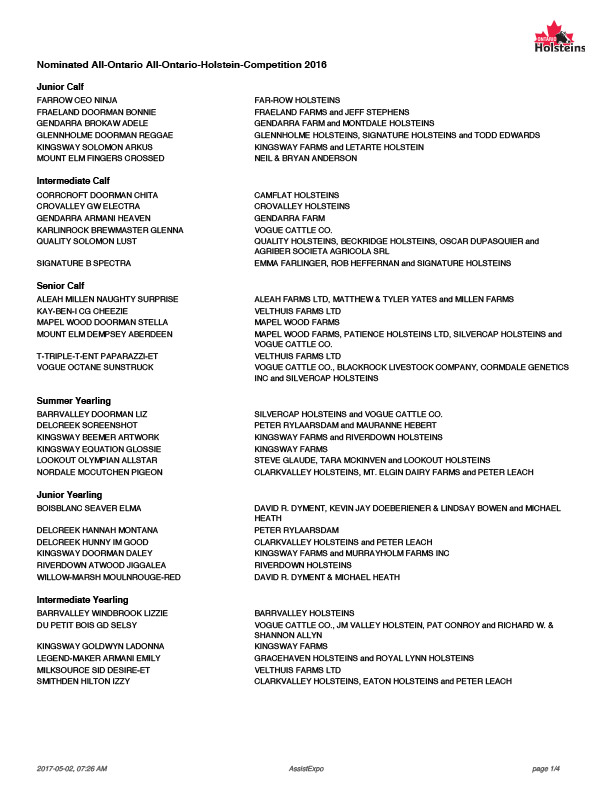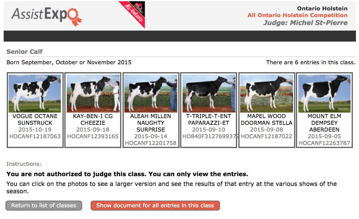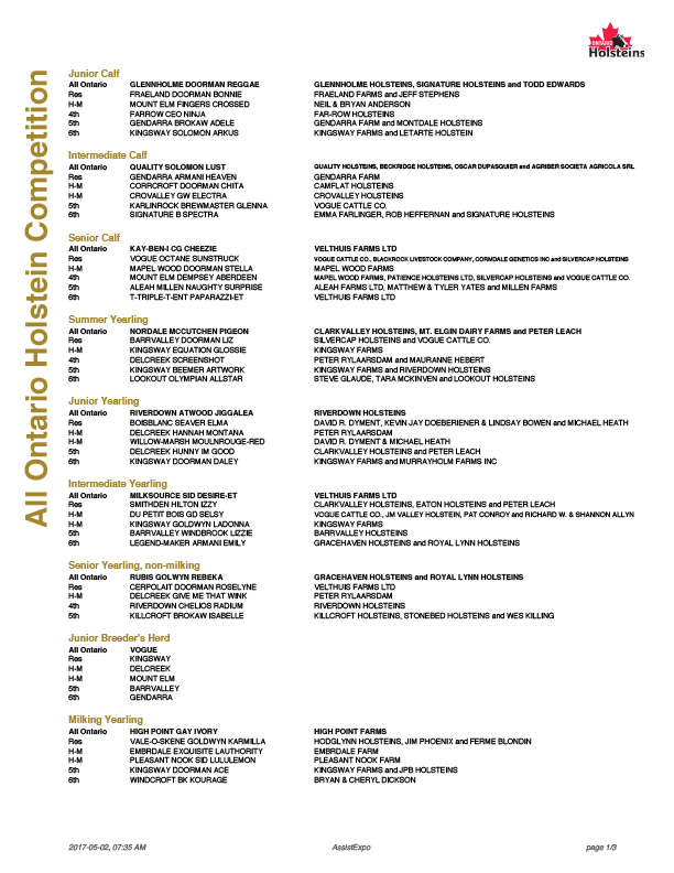 Thank you to Ontario-Holstein and Holstein-Quebec for providing these sample files (documents are generated by AssistExpo).